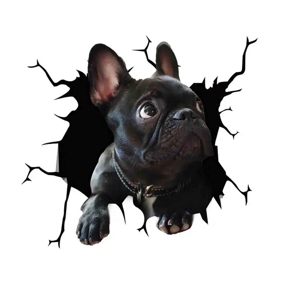 1 X Car Stickers Motorcycle Puppy Broken Window 3D Products Simulation French Bulldog Sticker Vinyl Decals Personality, Car Rear